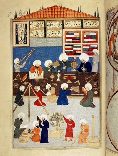 Takyuddin y otros astrónomos en el observatorio de Galaa. 1581.