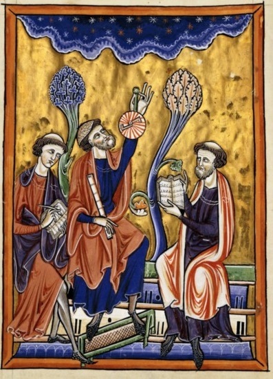Monjes con astrolabio, Salterio de Blanca de Castilla, reina de Francia, sXIII, Biblioteca Nacional Francesa, Ms. Arsenal Lat. 1186.