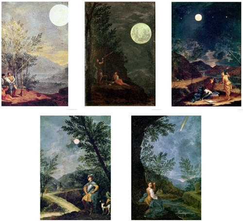 El italiano Donato Creti pintó en 1711 una serie de ocho pinturas en las que se muestran invertidos y magnificados diversos objetos astronómicos: planetas con todo tipo de detalles, incluso la Mancha Roja de Júpiter o los anillos de Saturno; la luna con sus mares, el sol y un cometa, con detalles inapreciables a simple vista. Con estas pinturas se logró convencer al papa Clemente XI de la importancia de tener un observatorio astronómico en la Santa Sede.