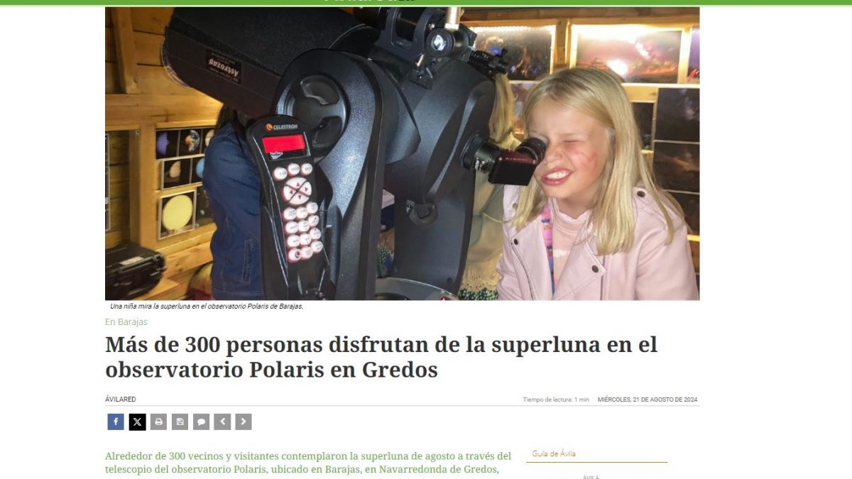 Alrededor de 300 vecinos y visitantes contemplaron la superluna de agosto a través del telescopio del observatorio Polaris, ubicado en Barajas, en Navarredonda de Gredos, durante tres noches.